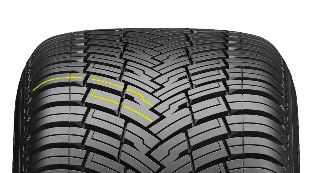 Lastik sırtındaki dört geniş kanal ve yoğun kılcal oluklar, üstün su tahliyesi sağlar. Bu sayede aquaplaning riski azalır ve ıslak zeminde yol tutuşu güçlenir. Pirelli Scorpion Verde All Season, özel kauçuk bileşimi ve asimetrik desen tasarımı sayesinde ıslak koşullarda güvenli sürüş ve etkili frenleme performansı sunar.