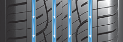 Sırt tasarımında yer alan 4 adet geniş çevresel kanal, suyu etkili şekilde tahliye ederek ıslak zeminde hidroplaning riskini en aza indirir.