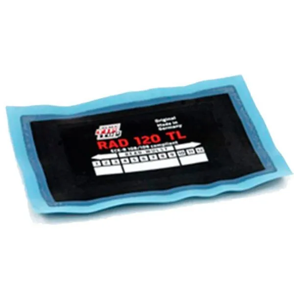 Rad 120 dış lastik yaması, 125x80 mm boyutlarıyla, çeşitli büyüklükteki delik ve yarıkların etkili bir şekilde onarılmasını sağlar.